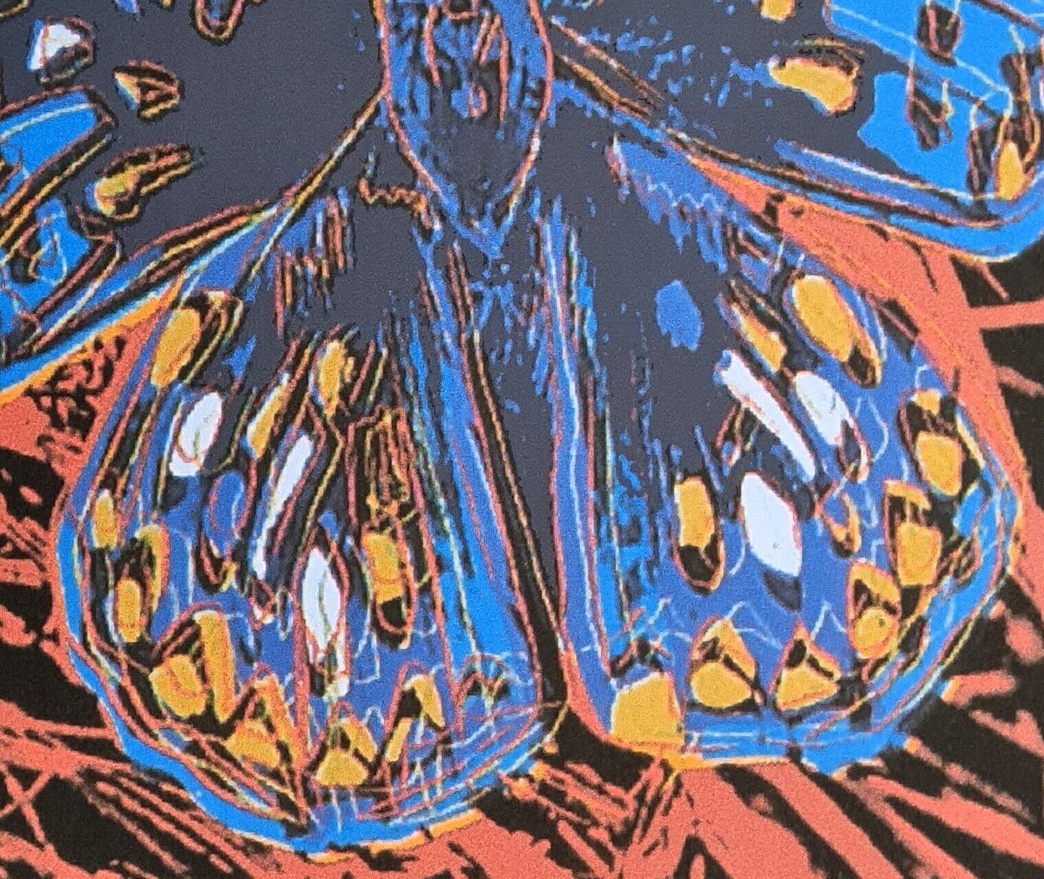 Lithographie Schmetterling In der Platte signiert und mit der Hand nummeriert Limitierte Auflage von 100 Stück Jedes Stück ist einzeln nummeriert 50 100 Gesamtgröße : 57 cm x 38 cm Hologrammsticker von Grafy Nach dem Original von Andy Warhol Wasserzeichen auf Arches France Papier Das Blatt wird flac