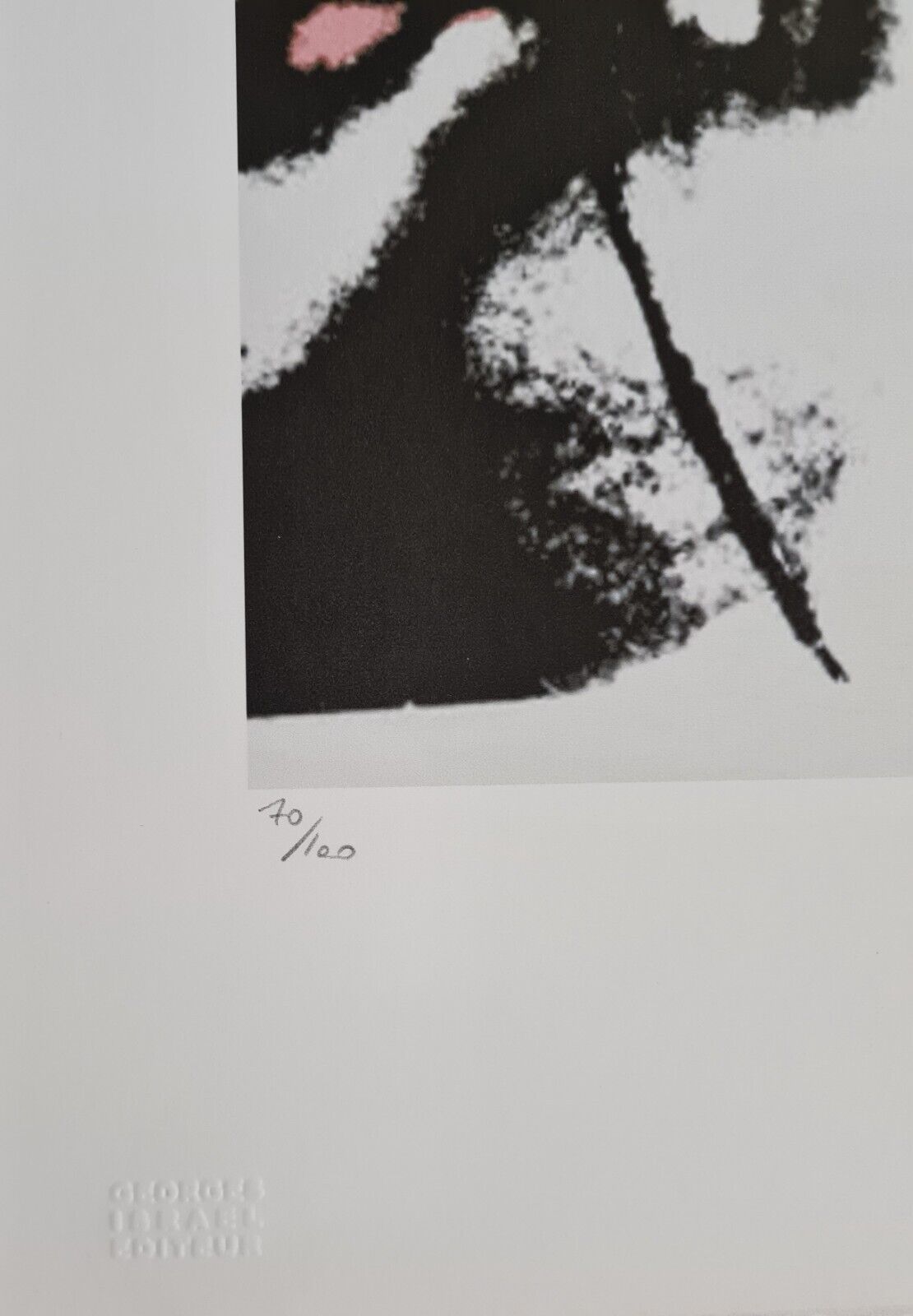 Lithographie Mick Jagger In der Platte signiert und mit der Hand nummeriert Limitierte Auflage von 100 Stück Jedes Stück ist einzeln nummeriert 70 100 Gesamtgröße : 57 cm x 38 cm Hologrammsticker von Grafy Nach dem Original von Andy Warhol Wasserzeichen auf Arches France Papier Das Blatt wird flach