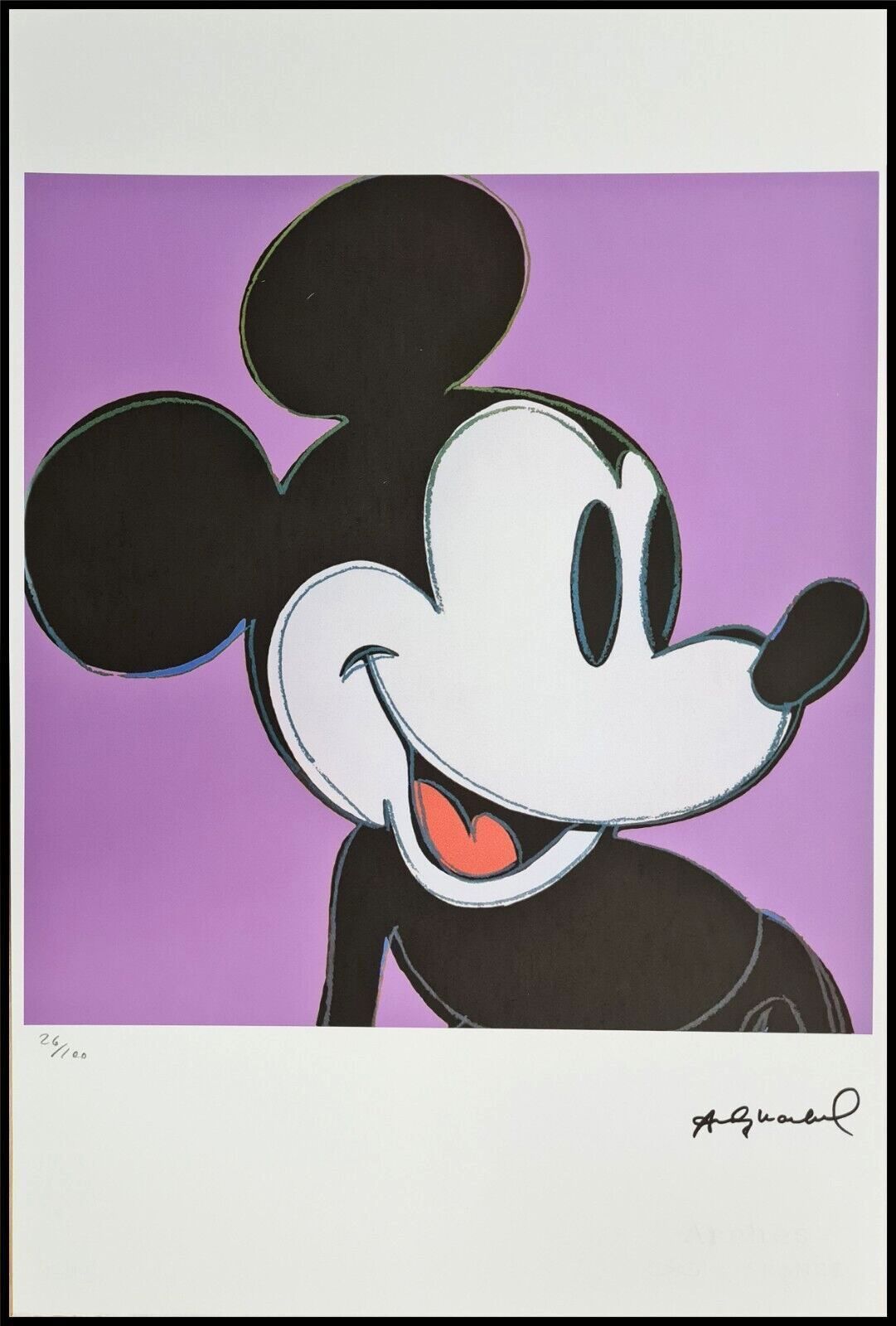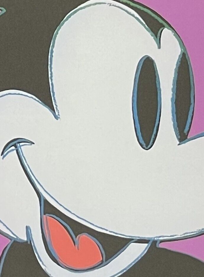 Lithographie Mickey Mouse In der Platte signiert und mit der Hand nummeriert Limitierte Auflage von 100 Stück Jedes Stück ist einzeln nummeriert 26 100 Gesamtgröße : 57 cm x 38 cm Nach dem Original von Andy Warhol Wasserzeichen auf Arches France Papier Das Blatt wird flach verschickt, nicht gerollt!