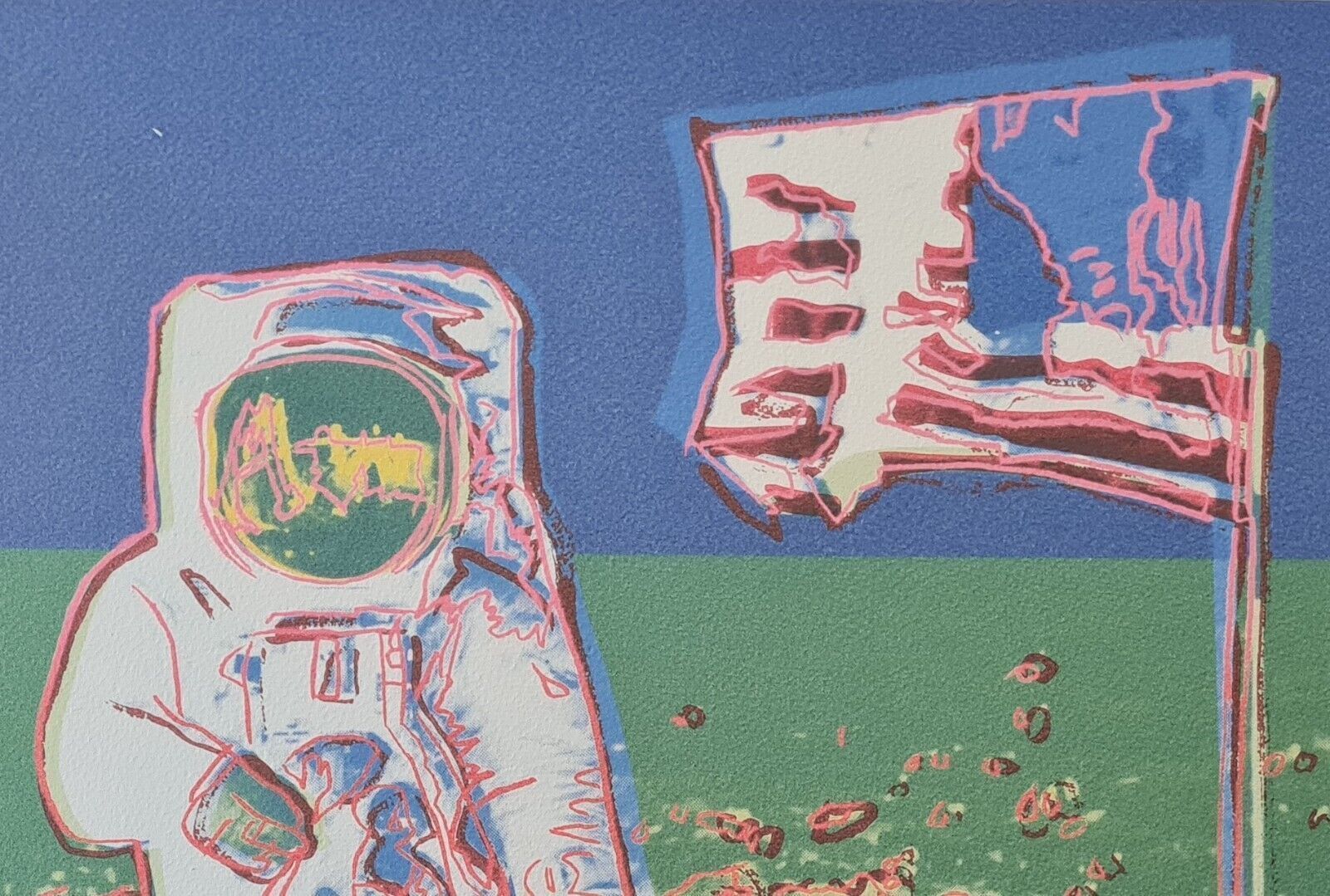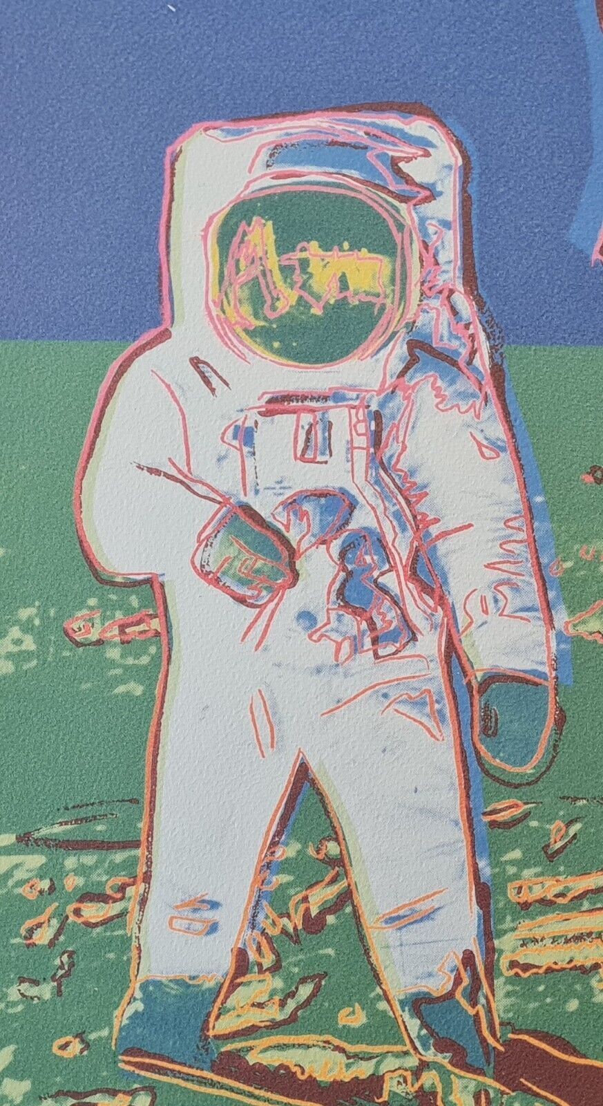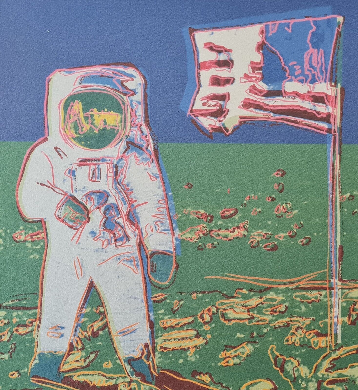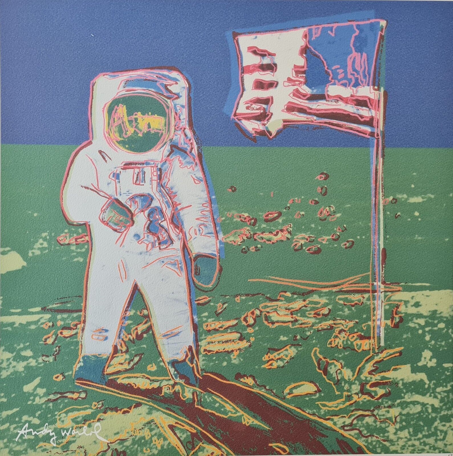 Lithographie Mondspaziergang In der Platte signiert und mit der Hand nummeriert Limitierte Auflage von 500 Stück Jedes Stück ist einzeln nummeriert Nummer kann vom Bild abweichen Gesamtgröße : 50 cm x 50 cm Nach dem Original von Andy Warhol Dies ist keine original signierte, sondern eine plattensign