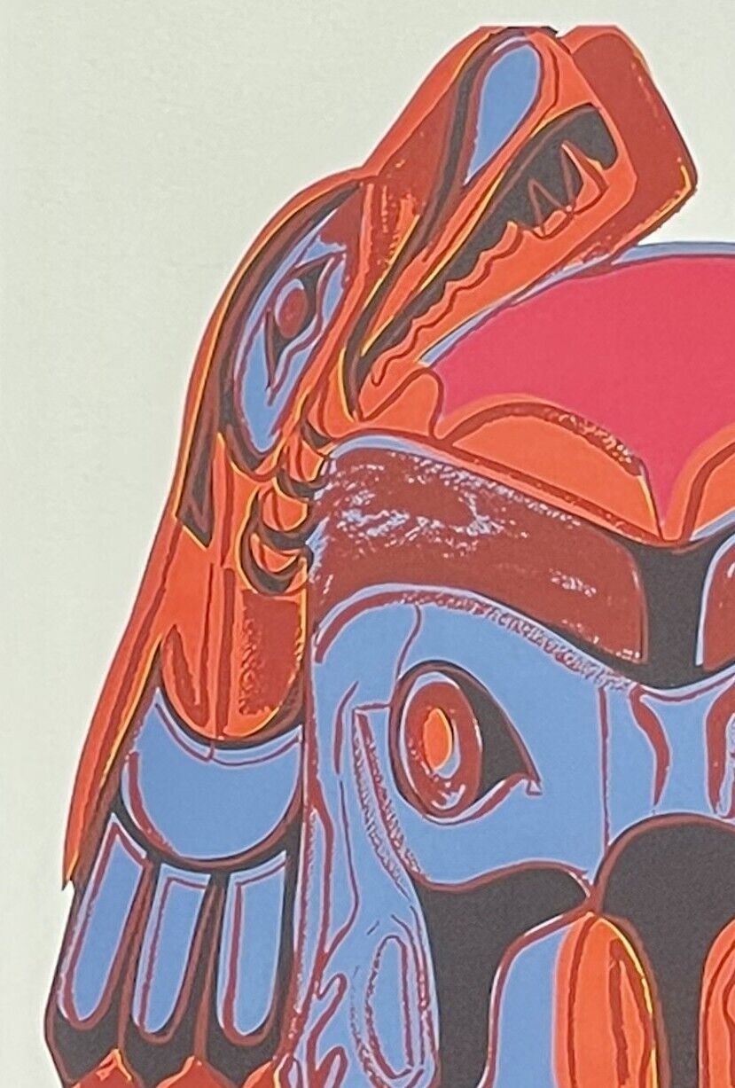 Lithographie Nordwestküstenmaske In der Platte signiert und mit der Hand nummeriert Limitierte Auflage von 100 Stück Jedes Stück ist einzeln nummeriert 56 100 Gesamtgröße : 57 cm x 38 cm Nach dem Original von Andy Warhol Wasserzeichen auf Arches France Papier Das Blatt wird flach verschickt, nicht g
