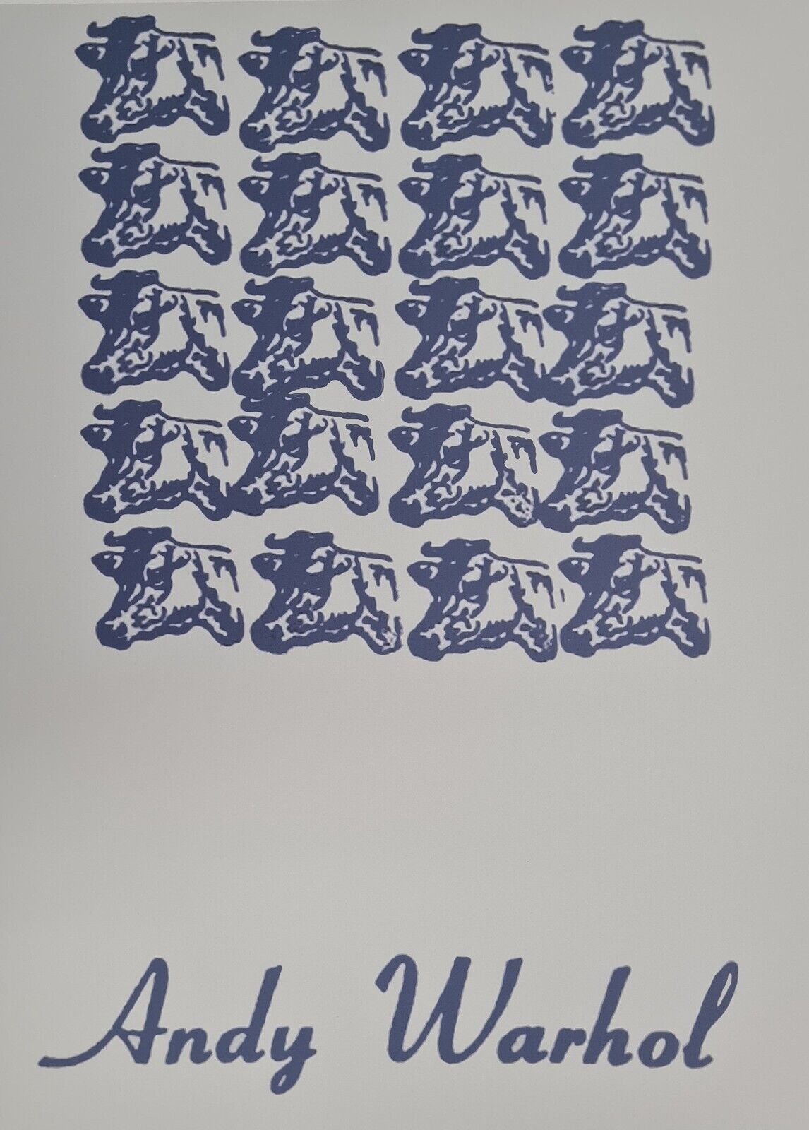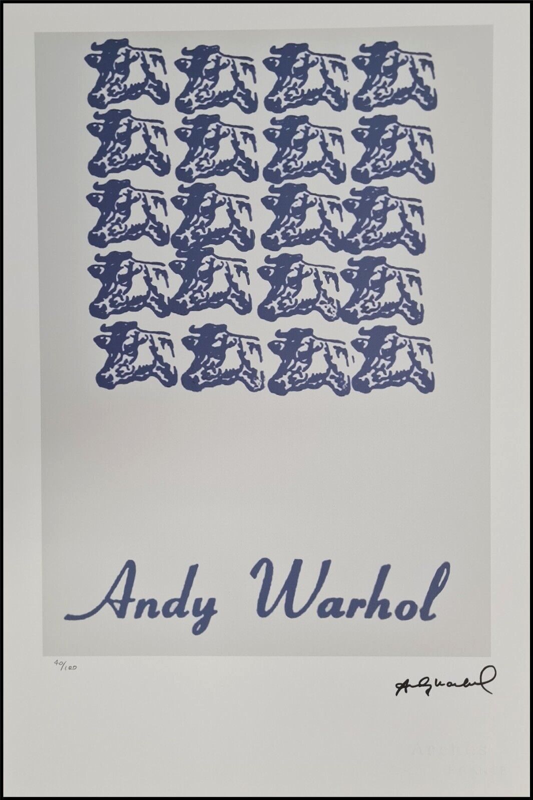 Lithographie Lila Kühe In der Platte signiert und mit der Hand nummeriert Limitierte Auflage von 100 Stück Jedes Stück ist einzeln nummeriert 40 100 Gesamtgröße : 57 cm x 38 cm Hologrammsticker von Grafy Nach dem Original von Andy Warhol Wasserzeichen auf Arches France Papier Das Blatt wird flach ve