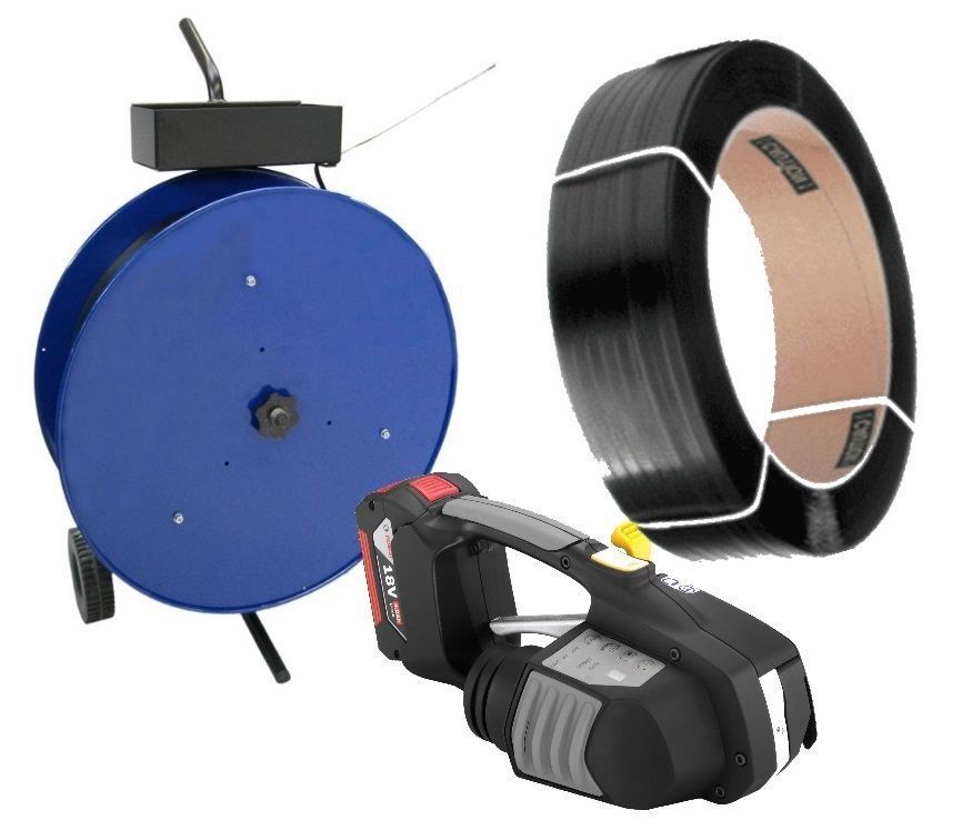 Angebot: Akku-Umreifungsgerät für PET / PP Band 9-16mm + Abrollwagen + PP-Band