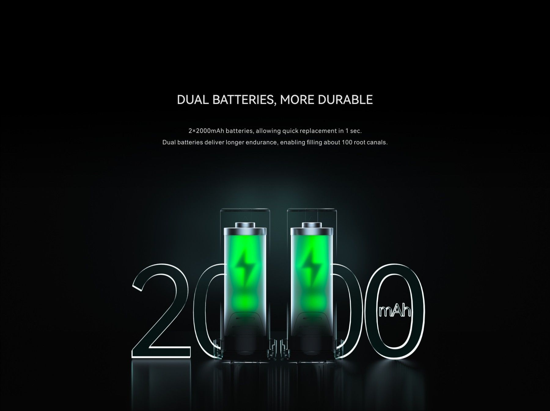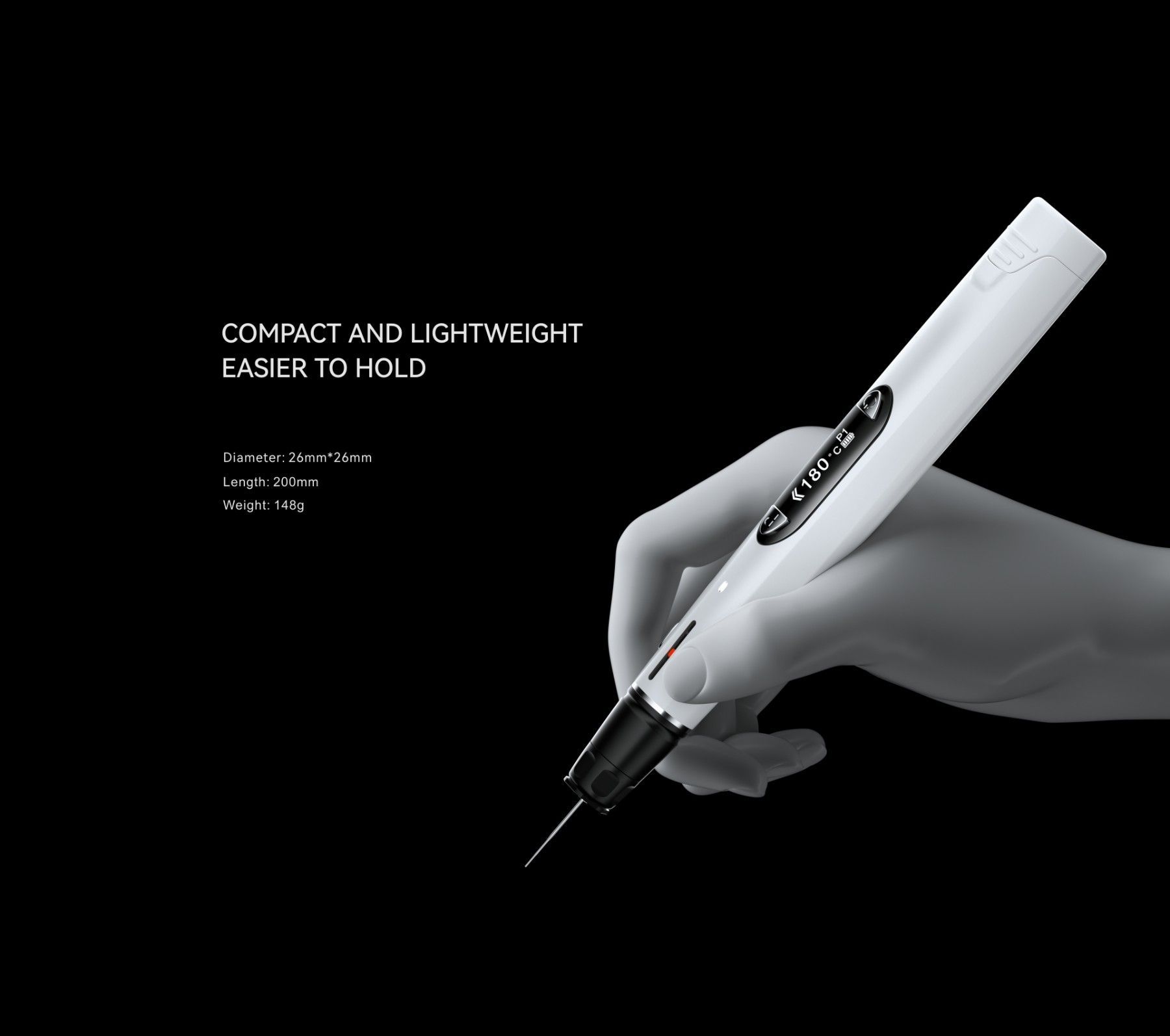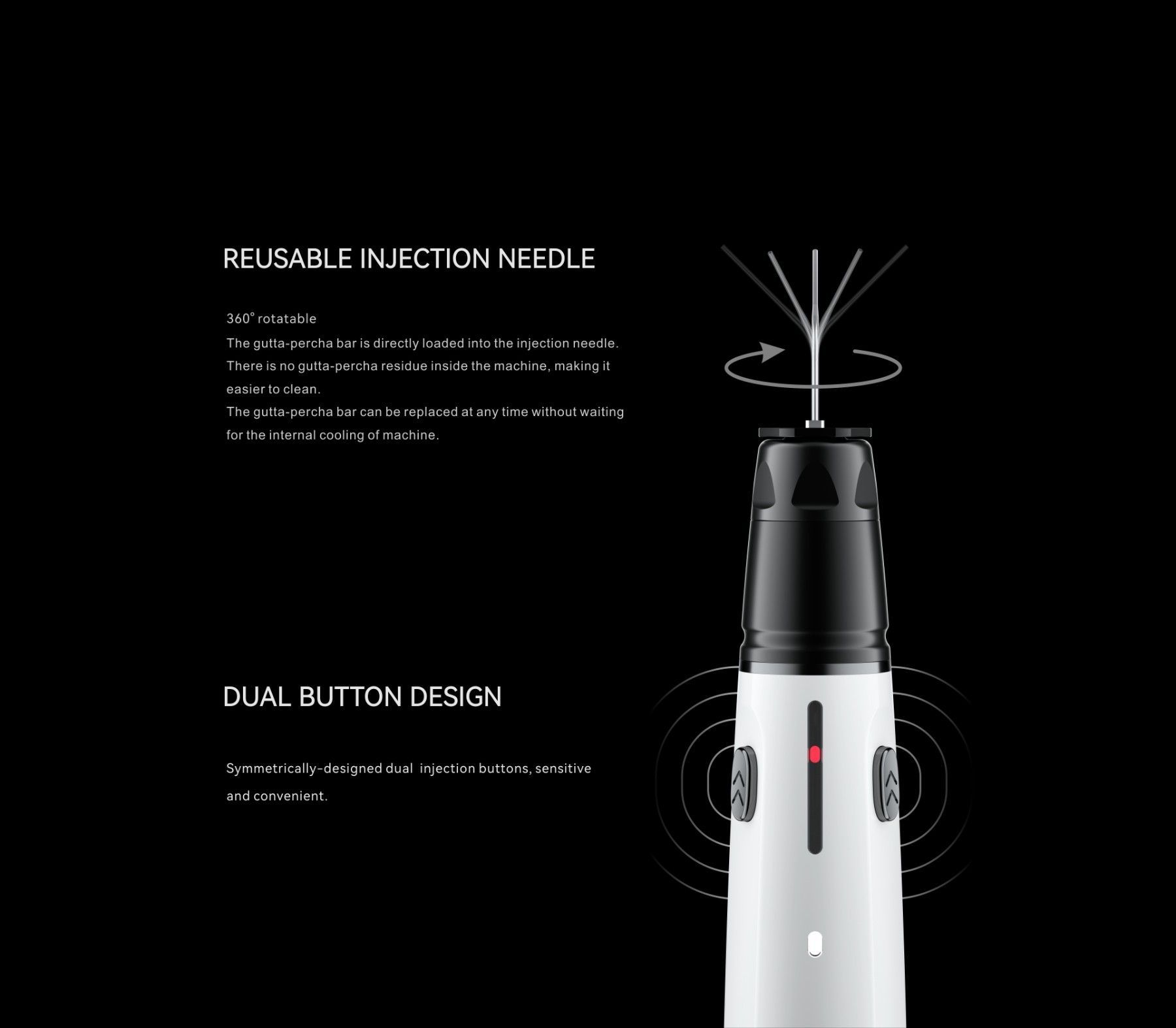 Drahtlos und elektrisch,Wiederverwendbare Injektionsnadel,Dual-Button-Design,Präzise und intuitive Anzeige der verbleibenden Guttapercha,Kompakt und leicht, einfacher zu halten Maschinenspezifikationen 5 voreingestellte Temperaturen: 100°, 120°, 150°, 180°, 200°. 3 Einspritzgeschwindigkeiten: langsam, mittel, schnell. Akku der Haupteinheit: 2000 mAh. Ladezeit: ca. 2,5 h (3 h für die erste Ladung).