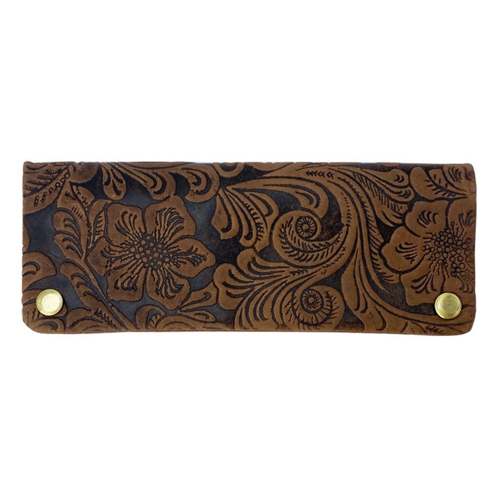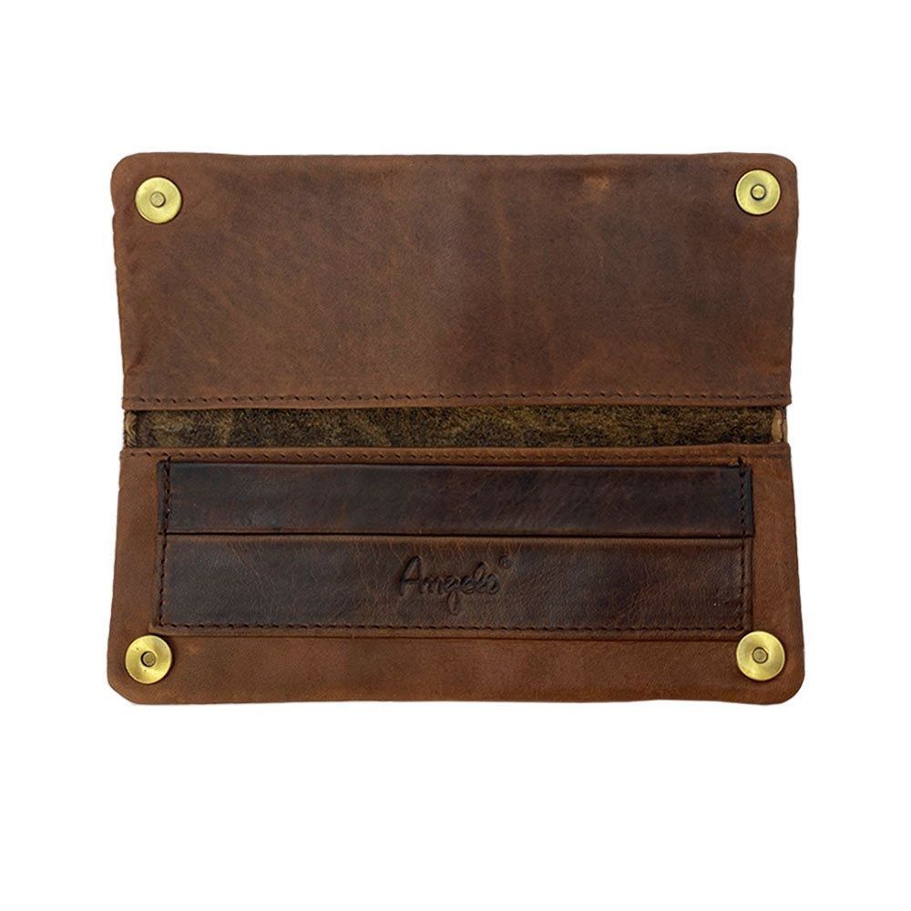 Angelo Tabakbeutel / Feinschnittbeutel + Zubehör aus Leder mit Flowerprint braun