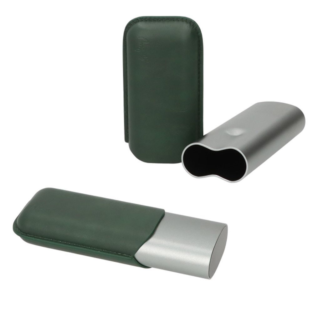 Angelo Zigarrenetui Alu eloxiert matt grau/grün für 2 Zigarren