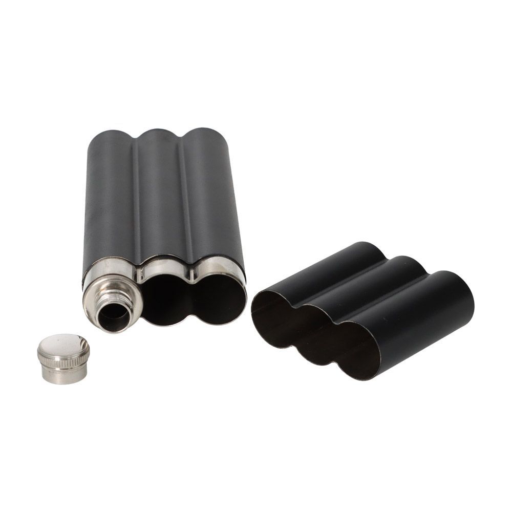 Angelo Zigarrenetui Schwarz matt für 2 Zigarren mit Flachmann aus Edelstahl