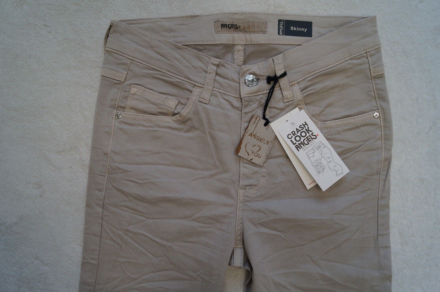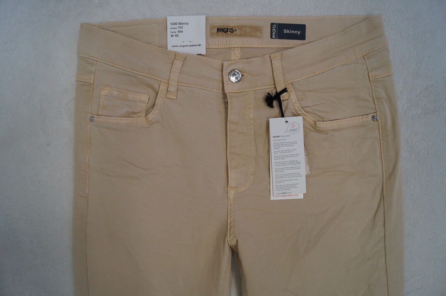 ANGELS Modell: Skinny CRASH LOOK Jeans Artikel: 102 Modell: 1230 Skinny Power-Stretch Größe: 36, 38, 40, 42, 44, 46 Länge: Short oder Regular -Slim Fit -super tight Leg - Regular Rise Farbe: grau (144), altrosa (694), beige-grau (484) oder creme-beige (964) Material: 98%Baumwolle,2%Elasthan Super Qu