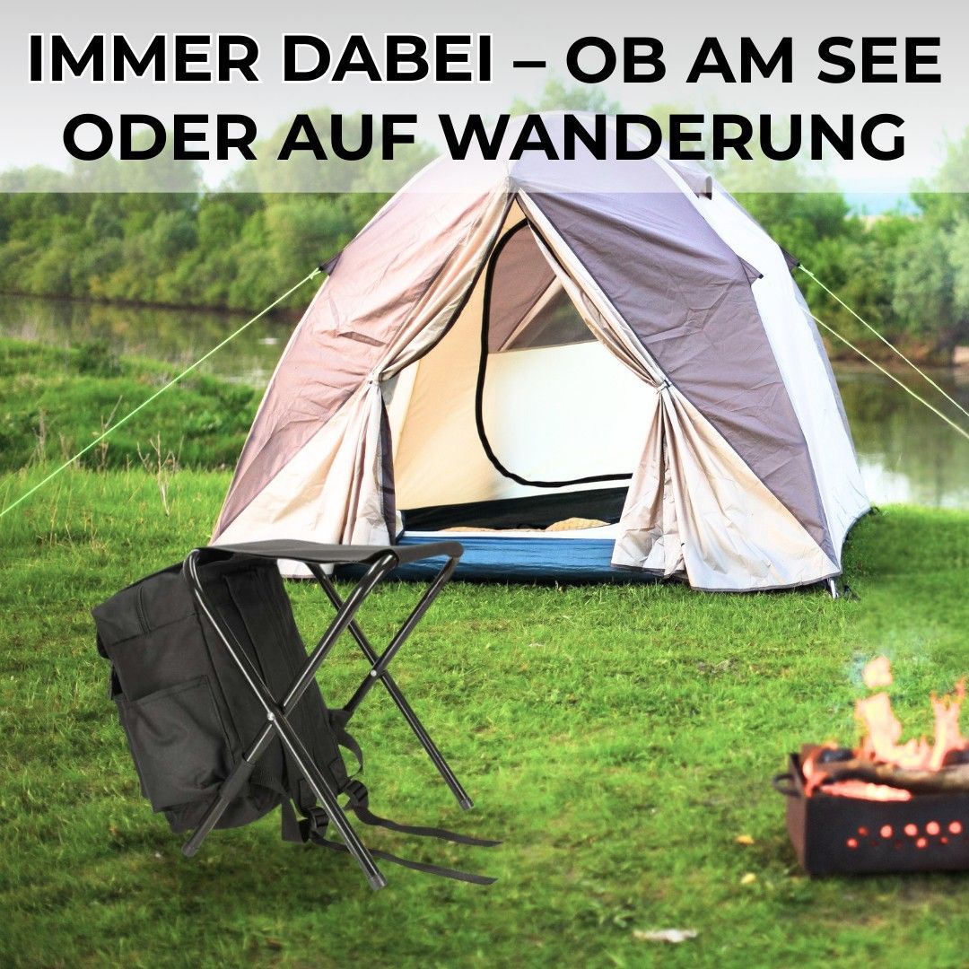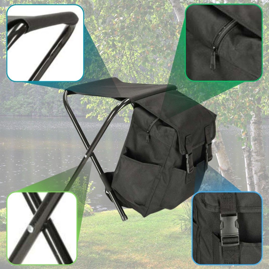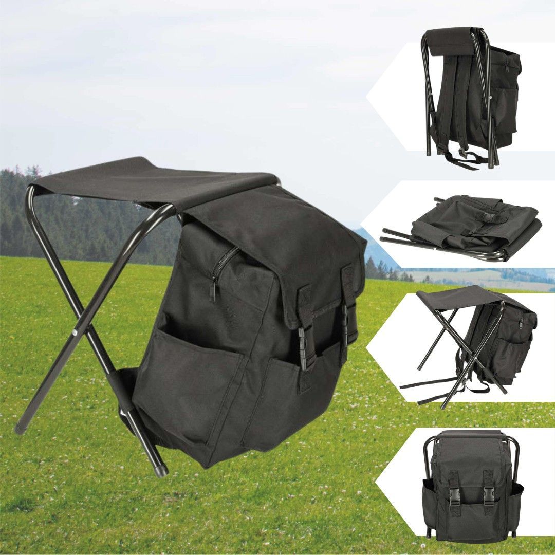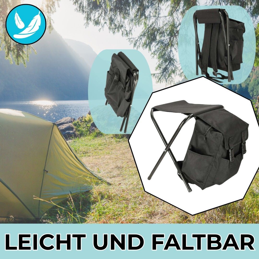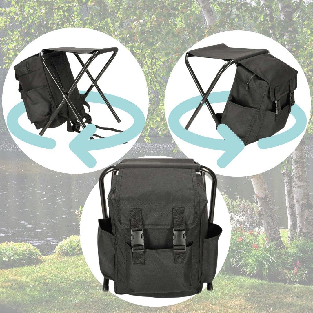 Angelstuhl mit Rucksack 10 L Campingstuhl Gartenstuhl Anglersessel Schwarz