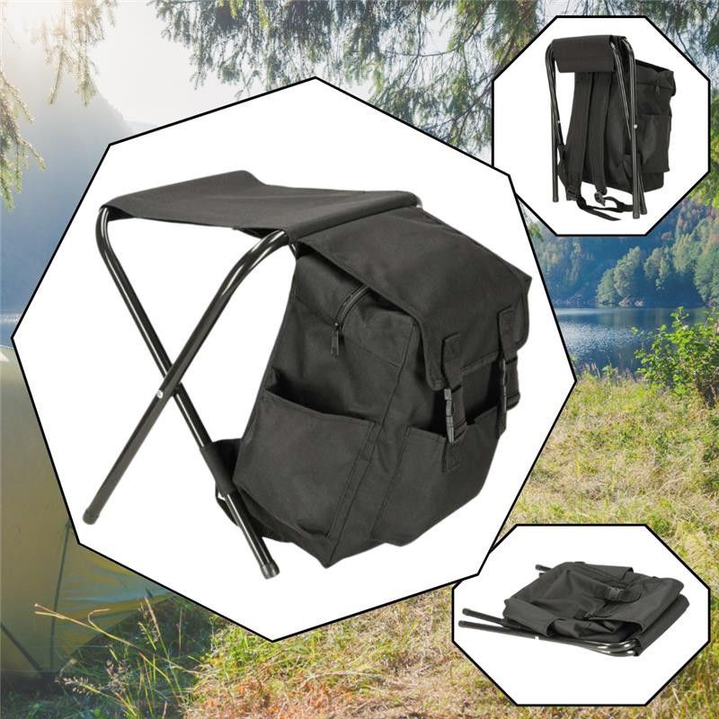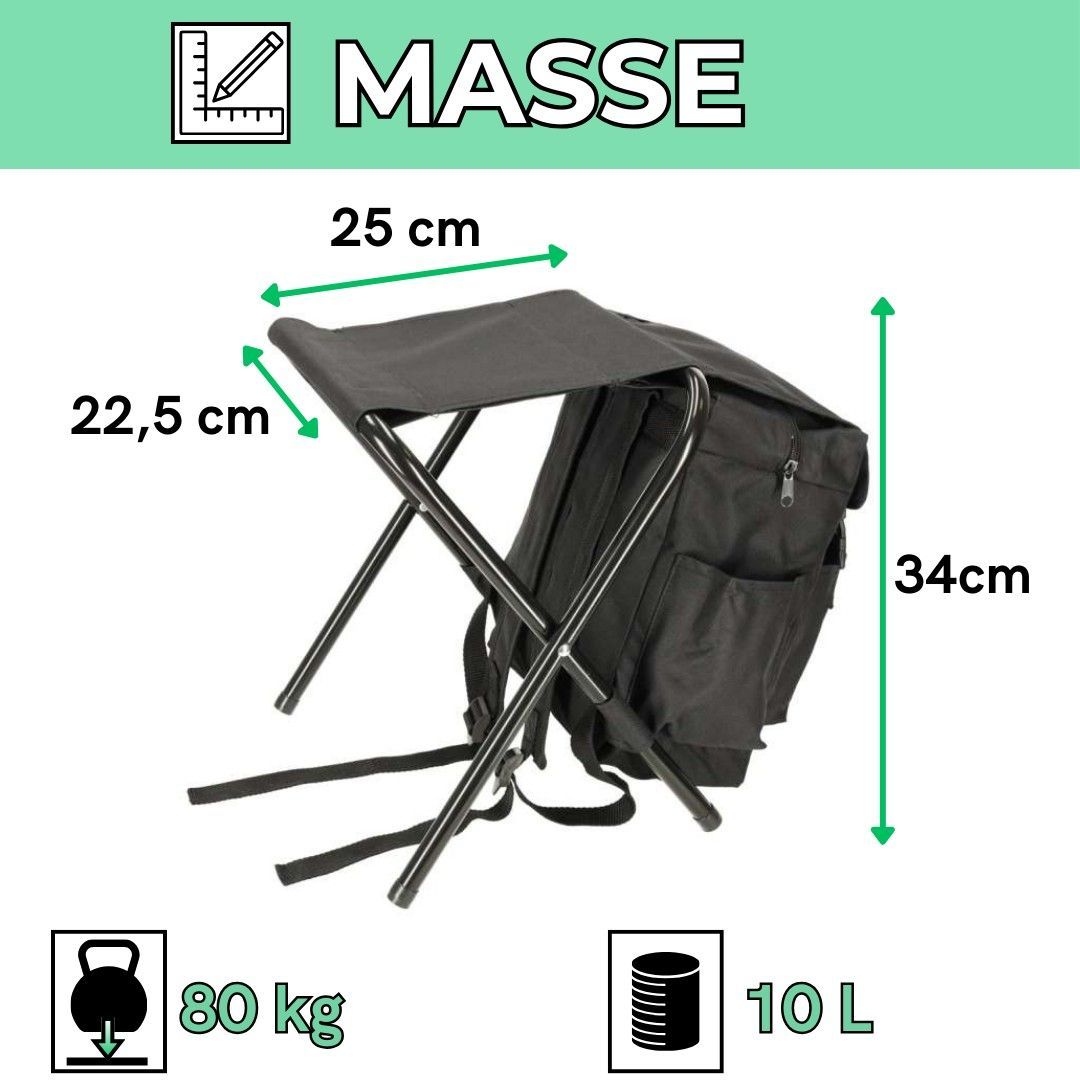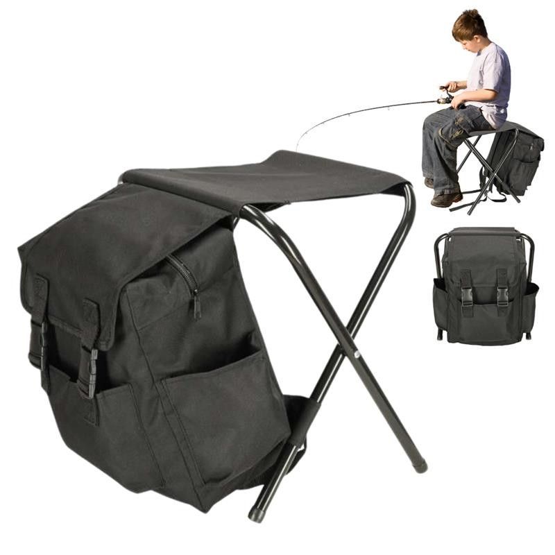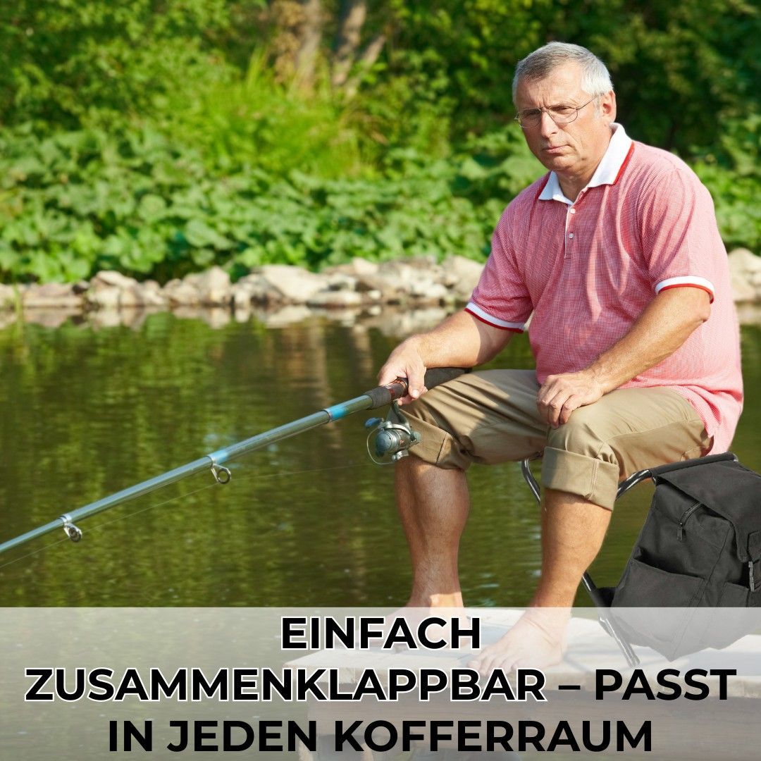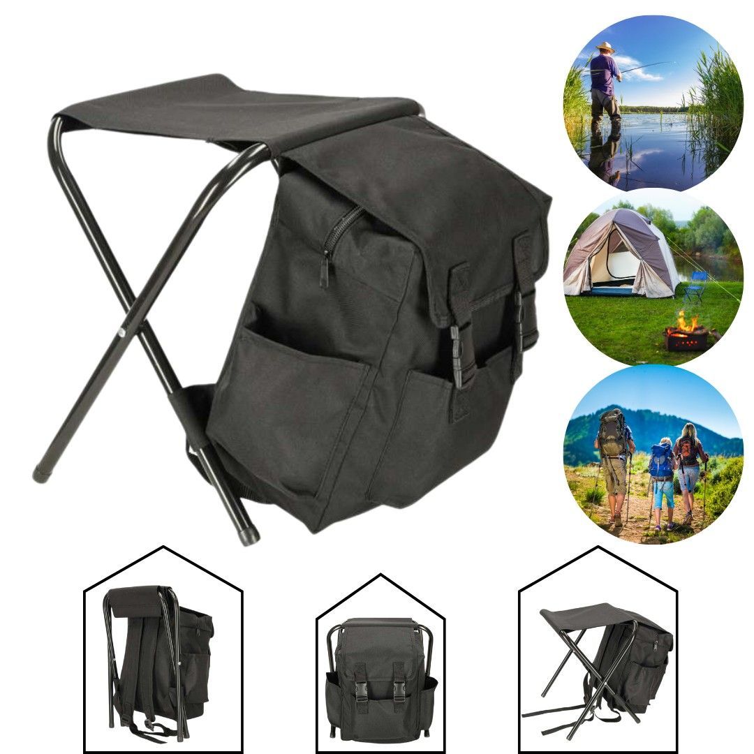 Angelstuhl mit Rucksack 10 L Campingstuhl Gartenstuhl Anglersessel Schwarz