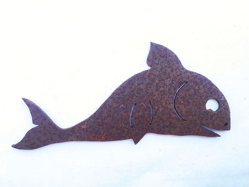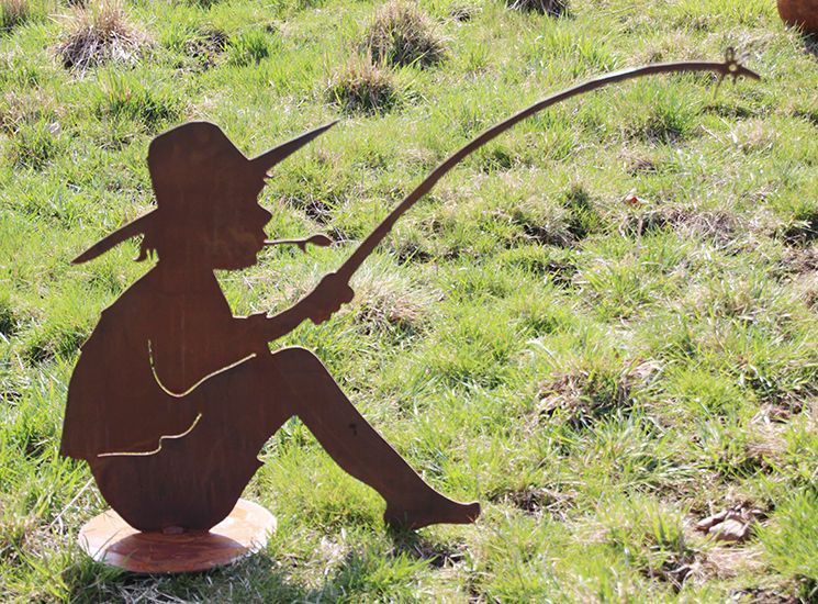 ANGLER MIT FISCH 60x90cm Rost Edelrost Metall Rostfigur Teich Gartendeko