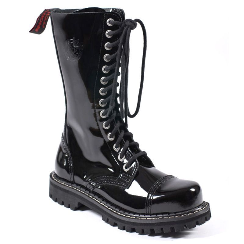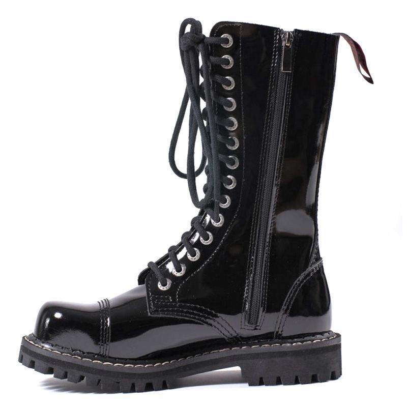 Angry Itch 14-Loch Gothic Punk Army Ranger Lack-Lederstiefel