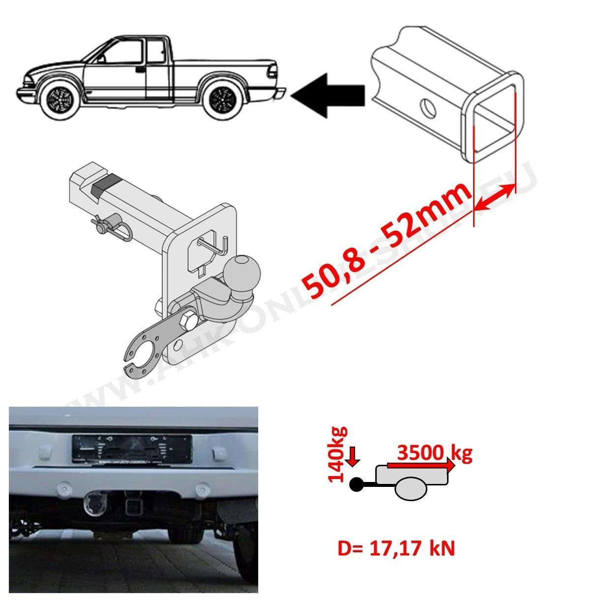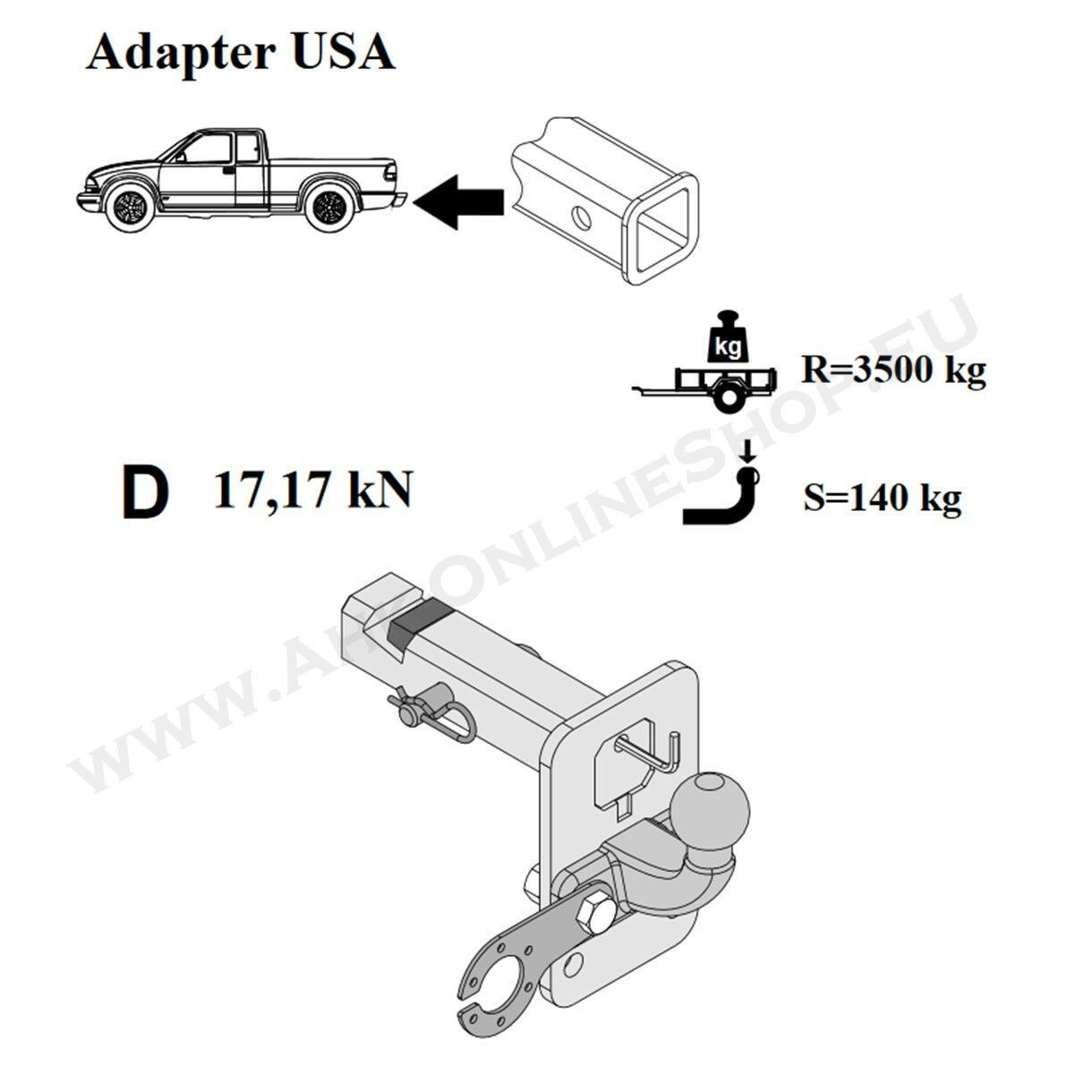 Anhängerkupplung Adapter 2" 51x51mm DODGE RAM 2500 Höhenverstellbar Anhängebock