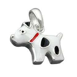 Gallay Anhänger 12x10mm Hund schwarz gefleckt farbig lackiert 925