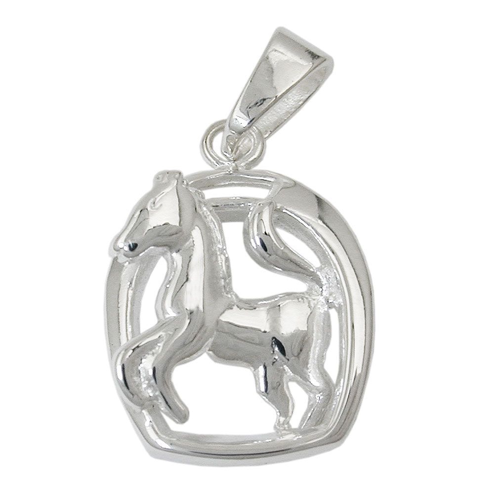 Anhänger 16x12mm Pferd im Hufeisen glänzend Silber 925