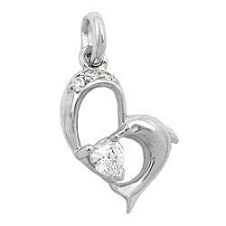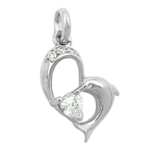 Gallay Anhänger 16x14mm Herz mit Delfin und Zirkonias glänzend Silber 925