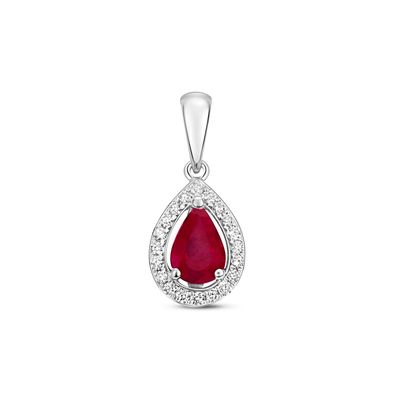 • 9 Karat (375) Weißgold Damen - Diamant Anhänger mit Rubin - 16mm*5mm