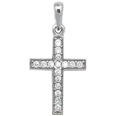 • 9 ct/Karat Weißgold Kreuz Damen - Anhänger mit Zirkonia