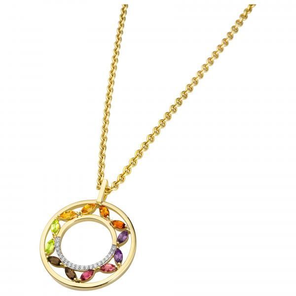 JOBO Anhänger 585 Gelbgold 12 bunte Edelsteine 20 Diamanten Brillanten