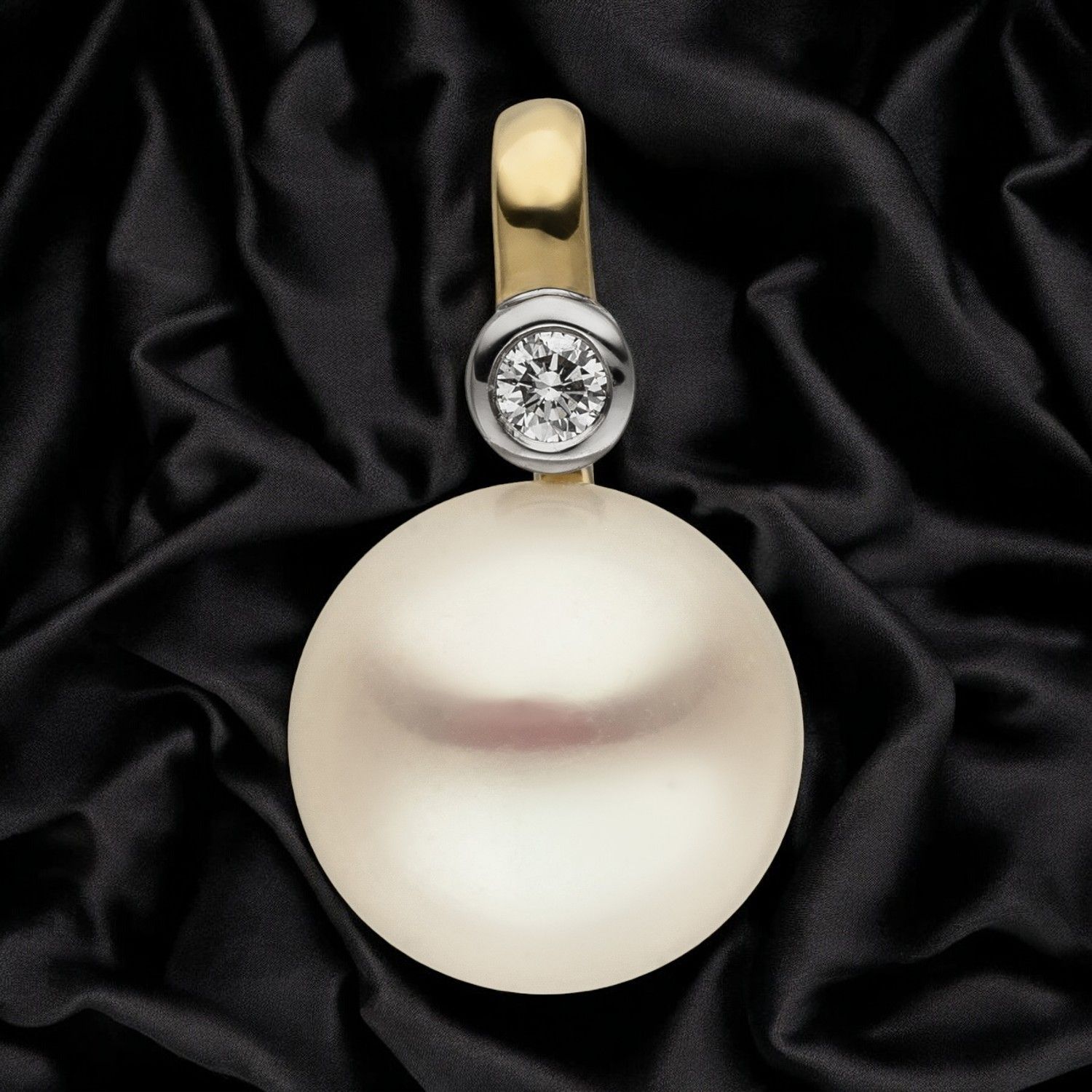 JOBO Anhänger 585 Gold Gelbgold 1 Süßwasser Perle 1 Diamant Brillant