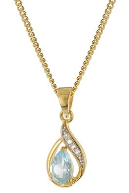 • trendor Schmuck Damen Gold-Anhänger 333 Bicolor Blautopas mit vergoldeter Kette 2119
