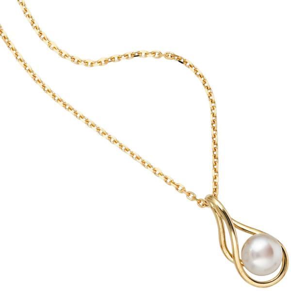 JOBO Anhänger 585 Gold Gelbgold 1 Süßwasser Perle Perlen Anhänger