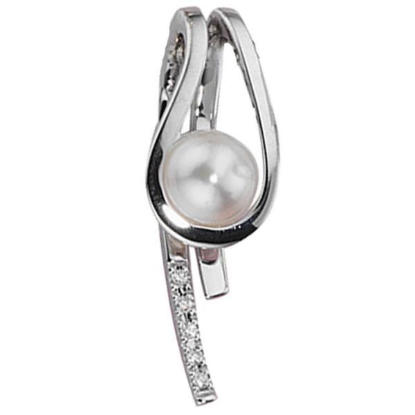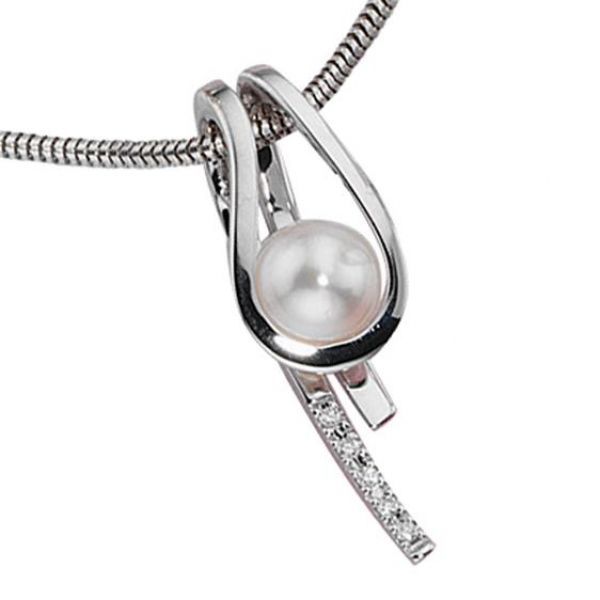 JOBO Anhänger 585 Gold Weißgold 1 Süßwasser Perle 5 Diamanten