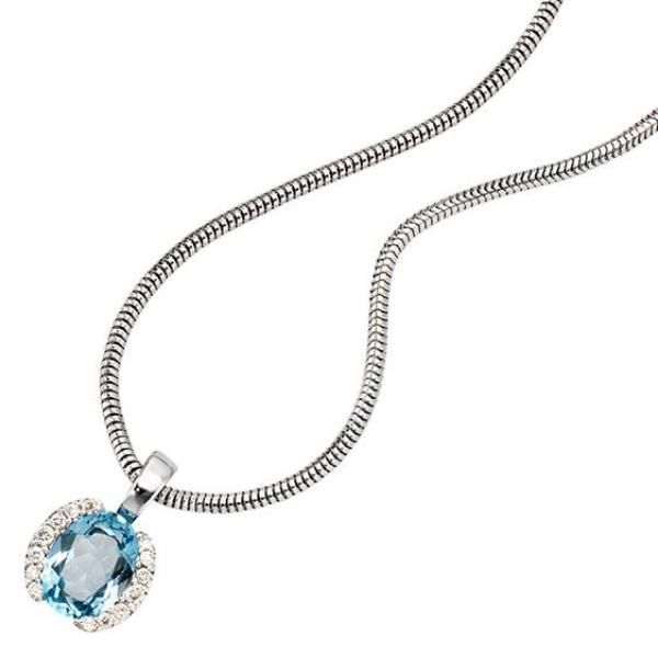 JOBO Anhänger 585 Gold Weißgold 14 Diamanten Brillanten 1 Blautopas blau