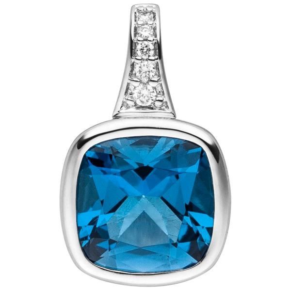 JOBO Anhänger 585 Gold Weißgold 5 Diamanten Brillanten 1 Blautopas