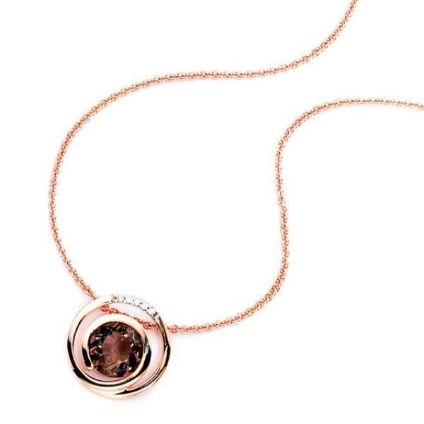 JOBO Anhänger 585 Rotgold 5 Diamanten Brillanten 0,035 ct. 1 Rauchquarz