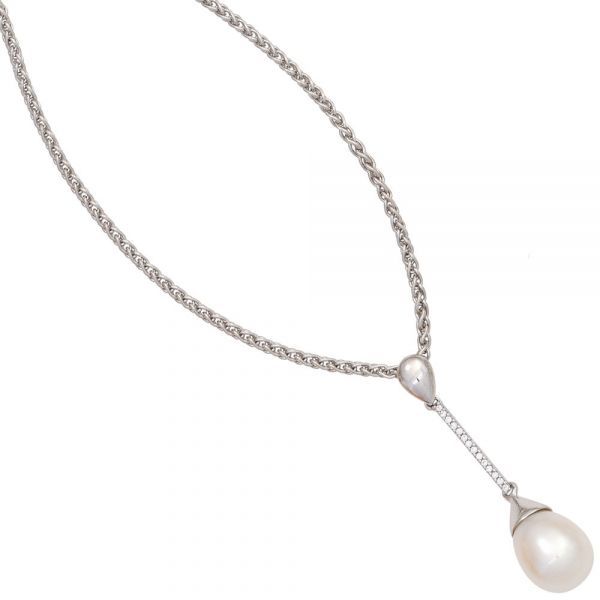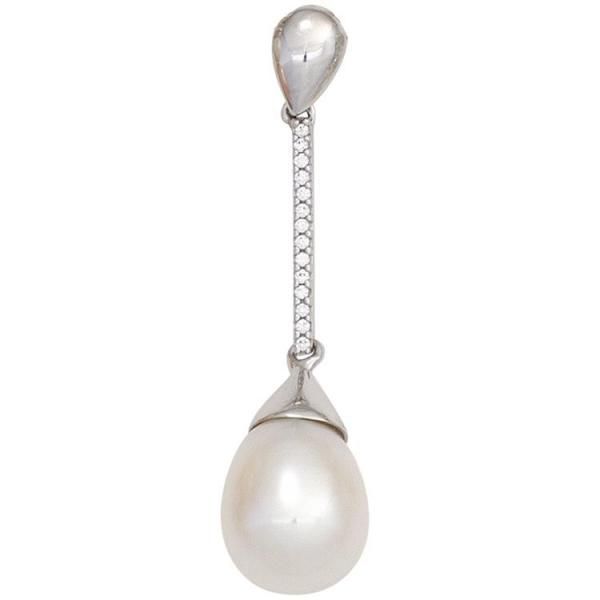 JOBO Anhänger 585 Weißgold 1 Süßwasser Perle 14 Diamanten 0,06ct