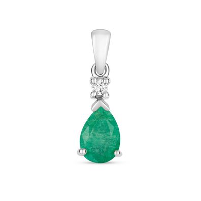• 9 Karat (375) Weißgold Damen - Diamant Anhänger mit Smaragd - 16mm*5mm