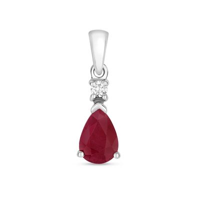 • 9 Karat (375) Weißgold Damen - Diamant Anhänger mit Rubin - 16mm*5mm