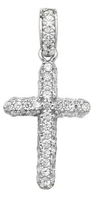 • 9 ct/Karat Weißgold Kreuz Damen - Anhänger mit Zirkonia