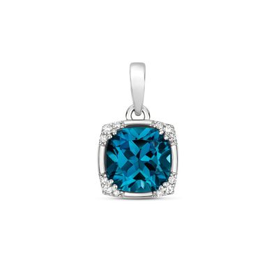 • 9 ct/Karat Weißgold Diamant Anhänger Brillant-Schliff HI - I1 mit London - Blautopas