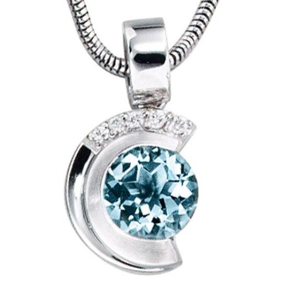 JOBO Anhänger 585 Weißgold mattiert 5 Diamanten Brillanten 1 Aquamarin blau