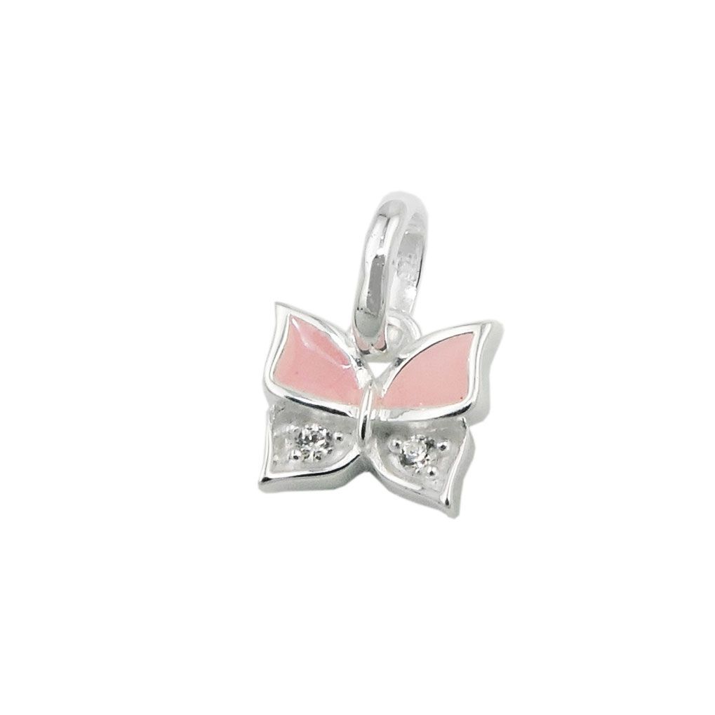Anhänger 7x8mm Schmetterling rosa lackiert mit Zirkonia Silber 925