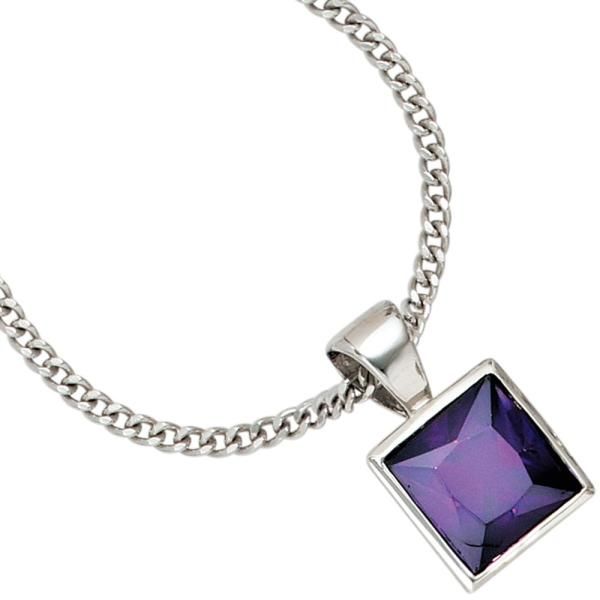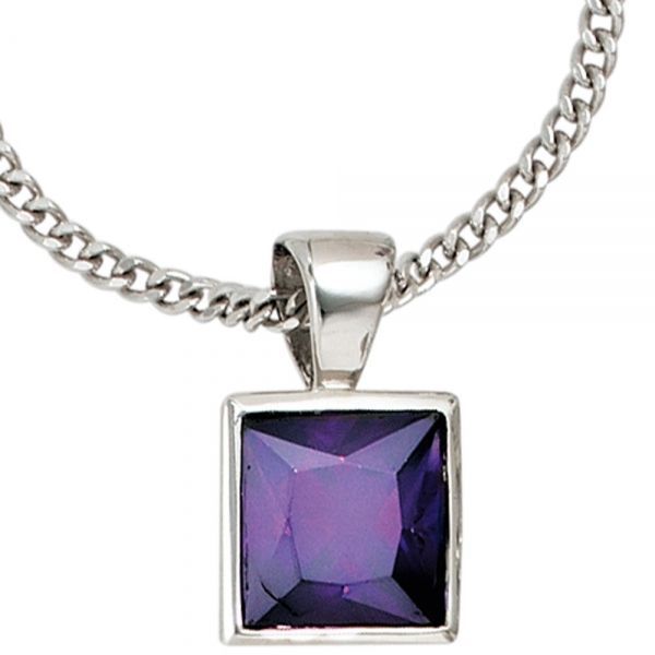 JOBO Anhänger 925 Sterling Silber rhodiniert 1 Zirkonia lila 14,9 mm