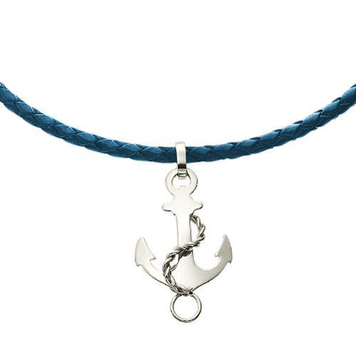 Anhänger Anker Edelstahl mit blauer Leder Flechtkordel für Herren Maritim Neu