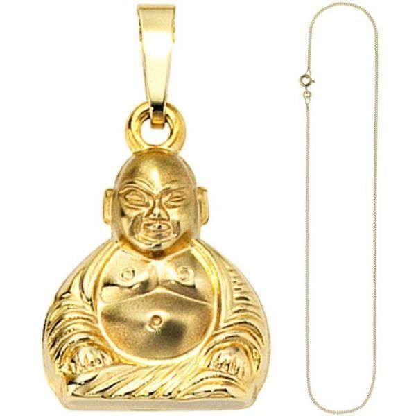 • Anhänger Buddha 333 Gold Gelbgold mit Kette 50 cm, Schmuck Set