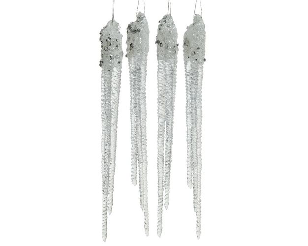 Anhänger Eiszapfen Kunststoff silber / transparent 15cm, 4 Stück