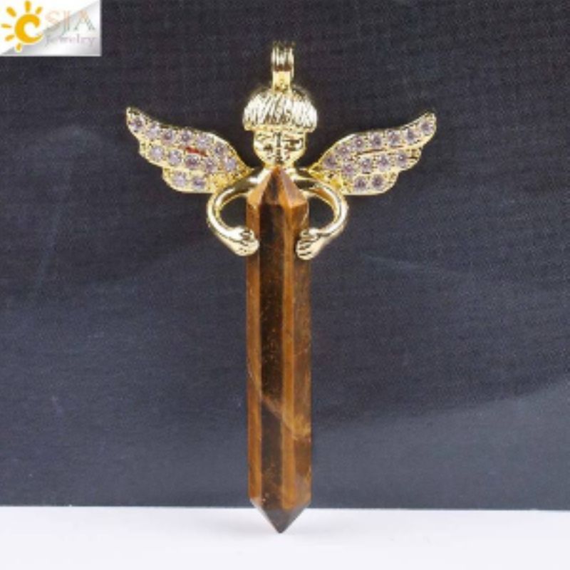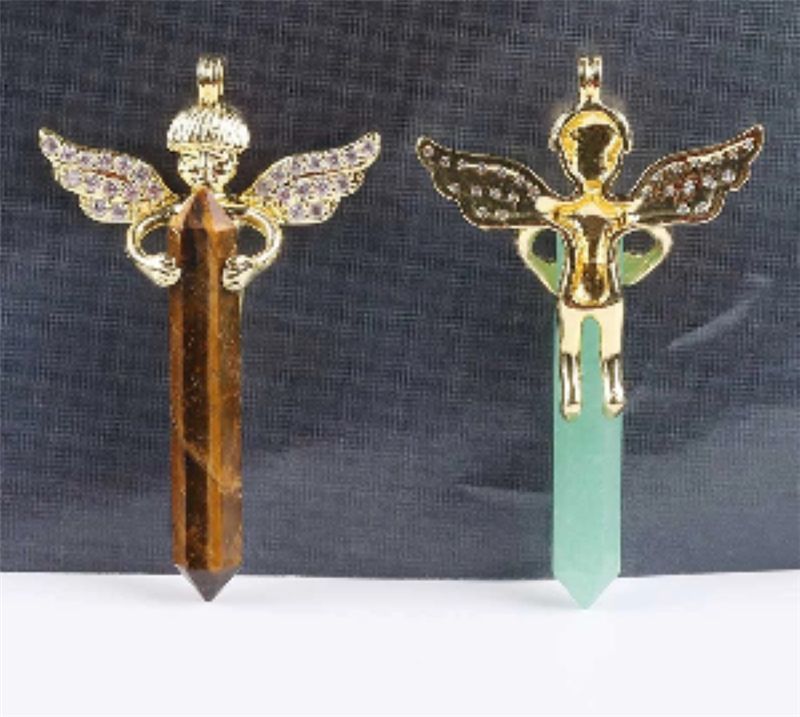 Anhänger ENGEL mit Kristallstab Tigerauge Halsketten-Anhänger Kristallpendel