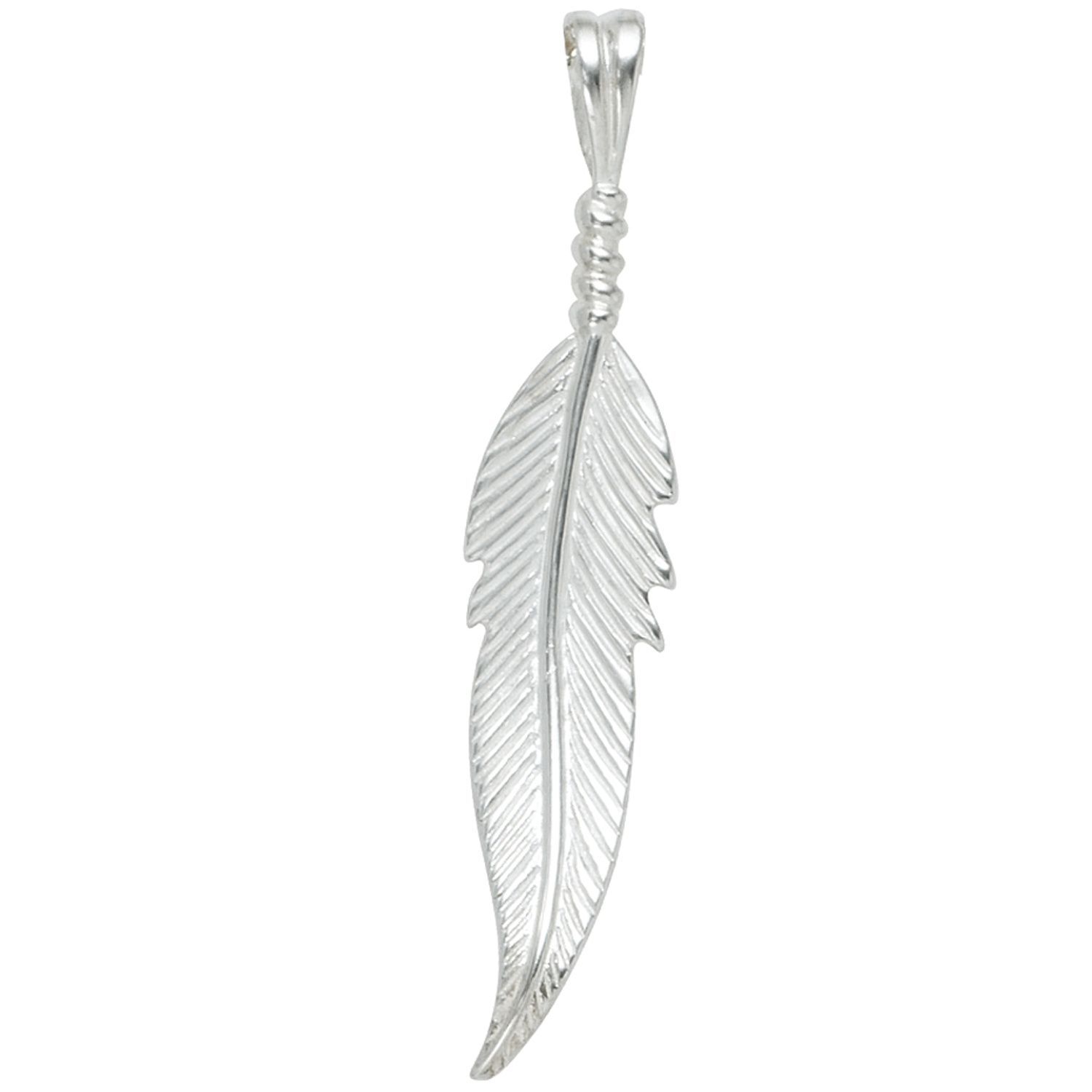 Anhänger 'Feder' aus 925 Sterlingsilber, rhodiniert, Höhe ca. 42,7 mm, Breite ca. 8,5 mm, Tiefe ca. 1,5 mm, Innenmaße der Öse ca. 5,7 mm x 2,5 mm, Gewicht ca. 1,6 g * Der Artikel ist anlaufgeschützt (rhodiniert) * Bitte beachten Sie die Maße! Auf dem Foto