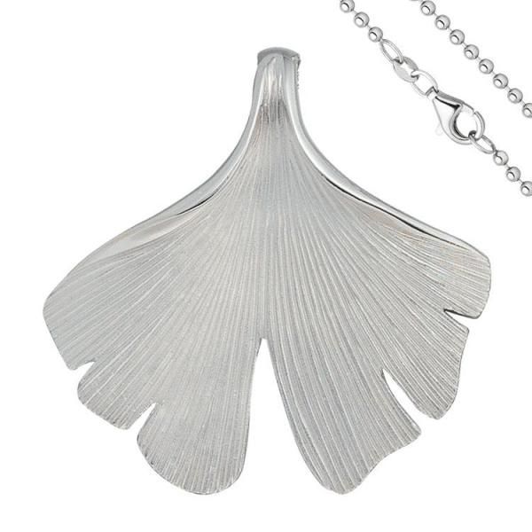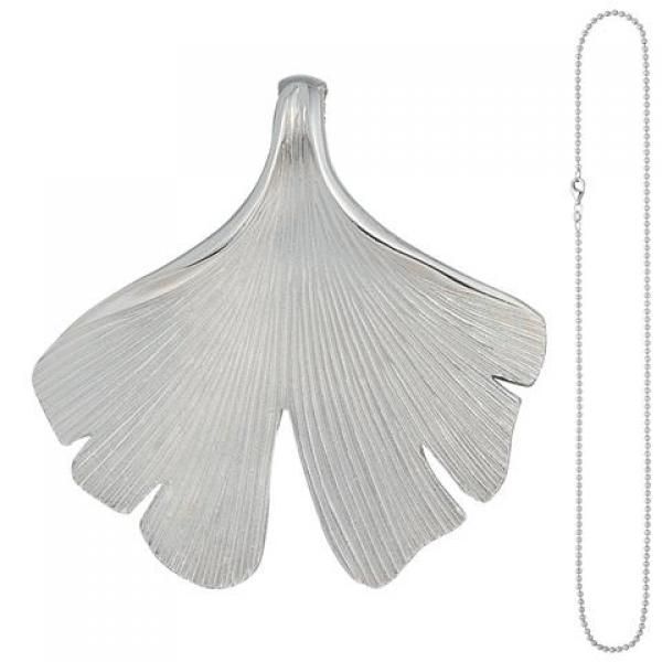 JOBO Anhänger Ginko Ginkgo 925 Sterling Silber matt mit Kette 45 cm