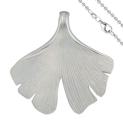 • Anhänger Ginko Ginkgo 925 Sterling Silber matt mit Kette 45 cm