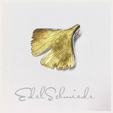 • großer bicolor Ginko Anhänger in 925 Silber vergoldet