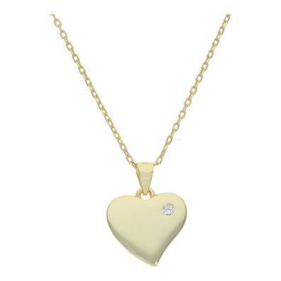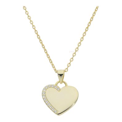 • Gravur Anhänger mit Kette Silber 925 Goldplattiert Herz, Zirkonia FSCO004gg