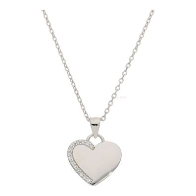 • Gravur Anhänger mit Kette Silber 925, Herz, Zirkonia FSCO004si