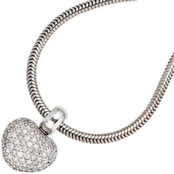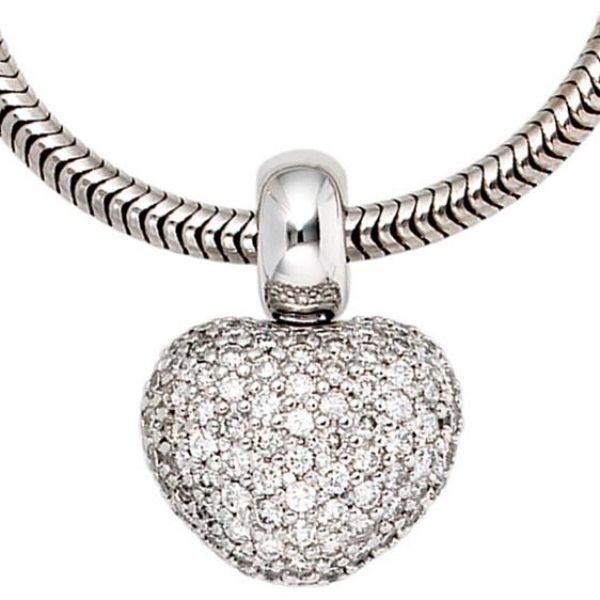 JOBO Anhänger Herz 585 Gold Weißgold 107 Diamanten Brillanten Herz Anhänger