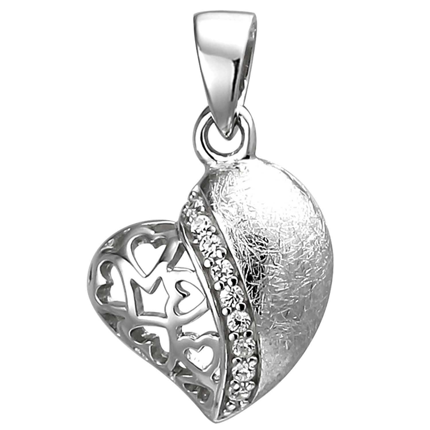 Anhänger Herz 925 Sterling Silber eismatt 9 Zirkonia Herzanhänger Silberanhänger
